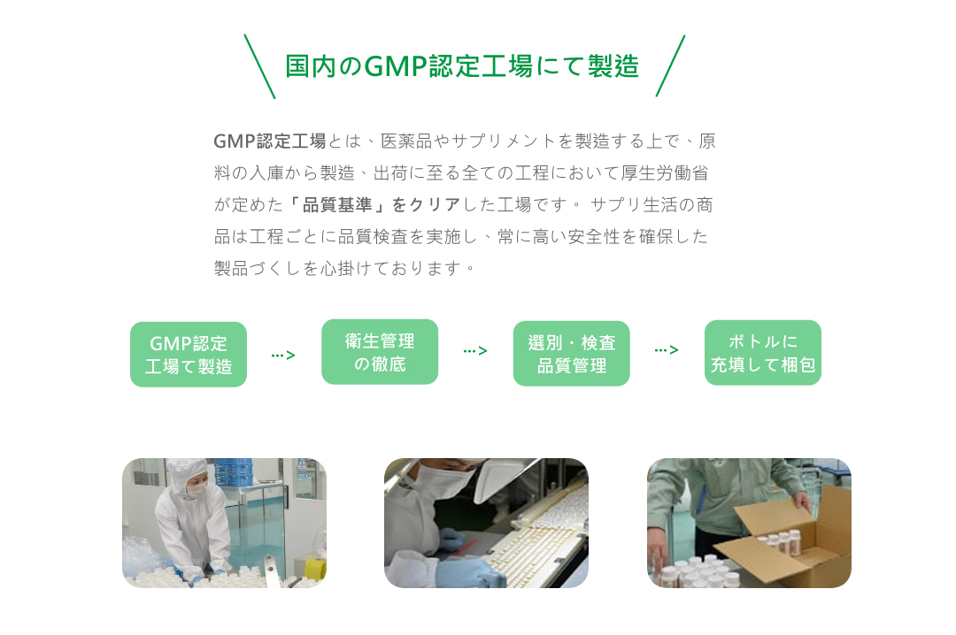 「補充生活」的所有產品,都是在『日本GMP認證工廠』完成的。