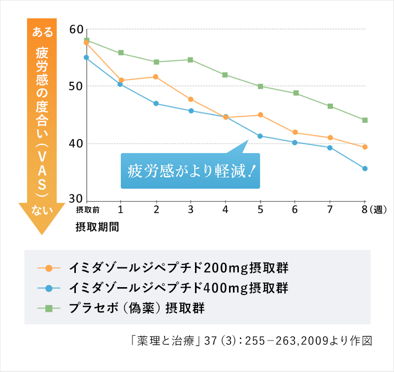 作為產官學合作項目的驗證結果,發現每天 200 至 400 毫克的攝入量對於防止疲勞是最有用的。