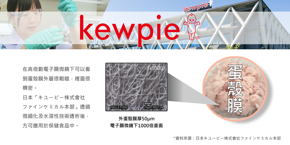 大家都知道,膠原蛋白最好的來源就是動物性的,所以以往素食者因為生理需要,要補充膠原蛋白時,幾乎都沒有辦法選擇。近年透過「キユーピー株式會社ファインケミカル本部」研究發現,蛋殼膜中不但有蛋白質,還有Ⅱ型、Ⅴ行跟Ⅹ型的膠原蛋白。
