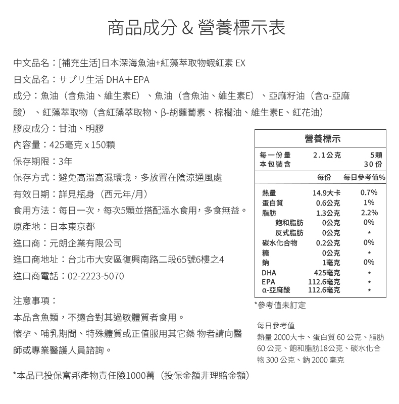 √ Omega 3 脂肪酸高達84%以上高濃度魚油