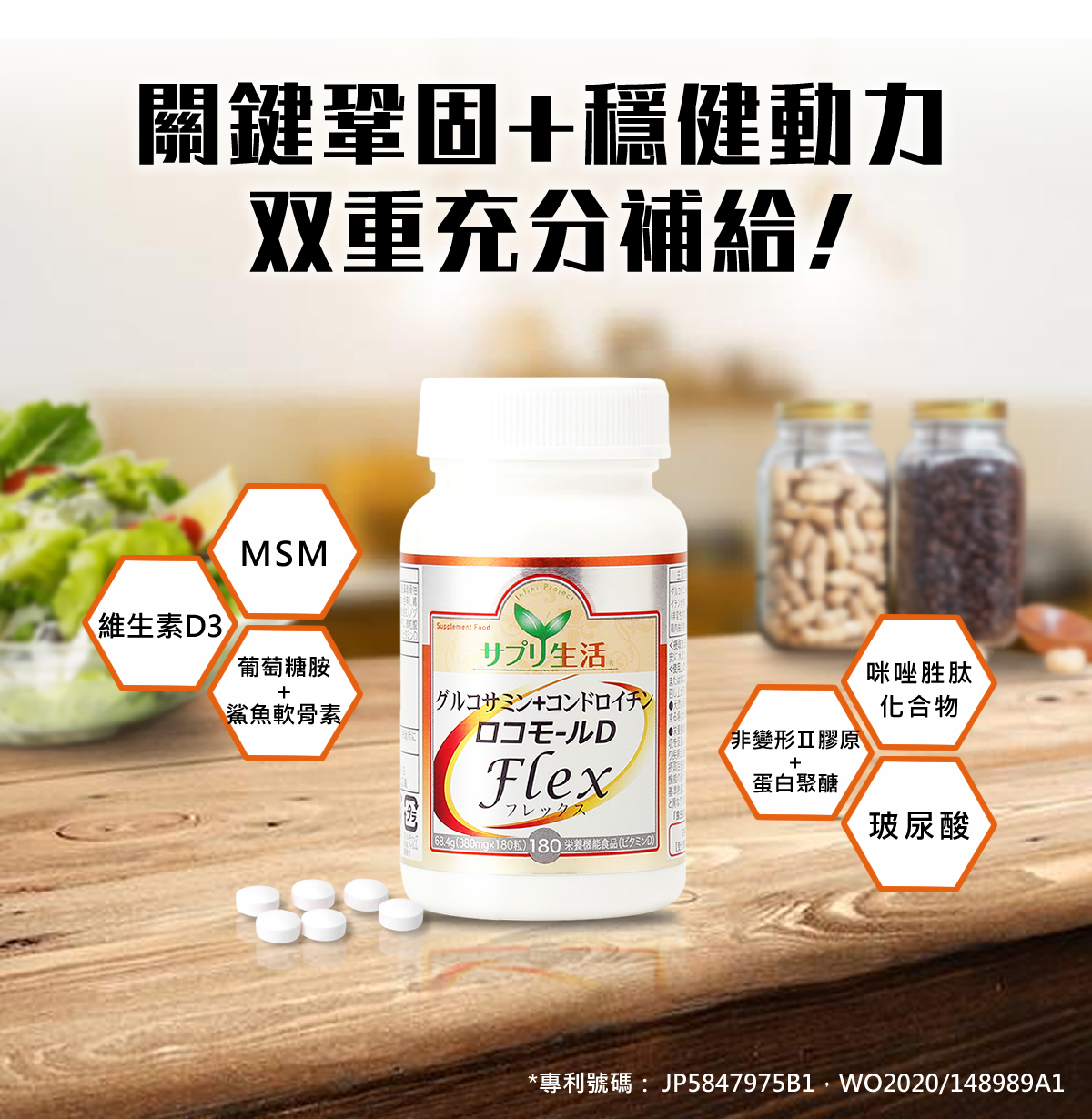 搭配 非變性二型膠原蛋白 (UC-2)、蛋白聚醣、葡萄糖胺、軟骨素、MSM、咪唑胜肽化合物