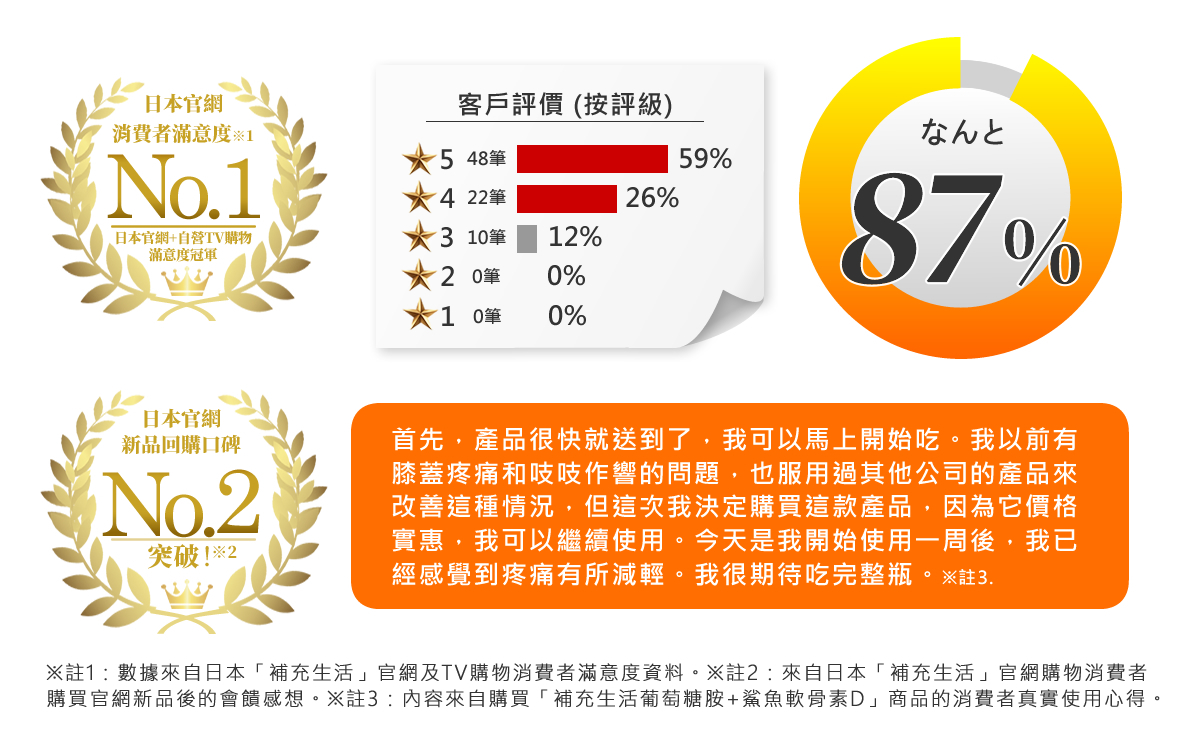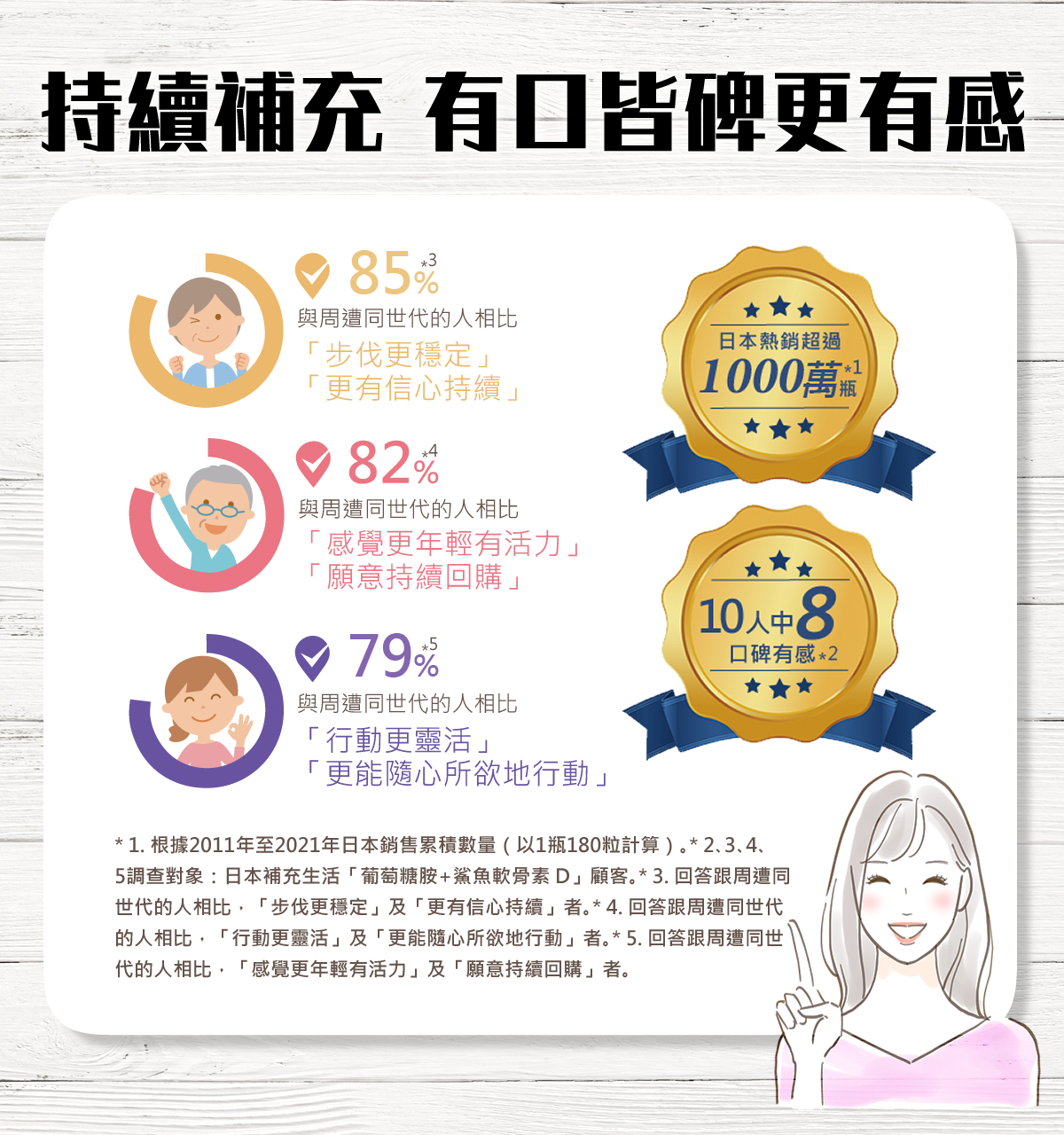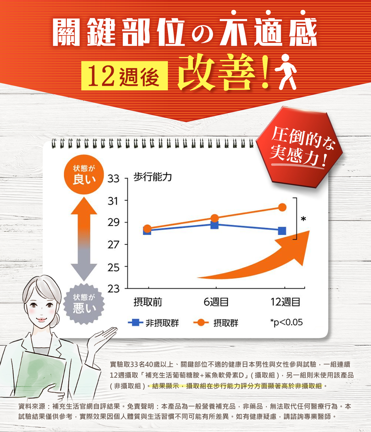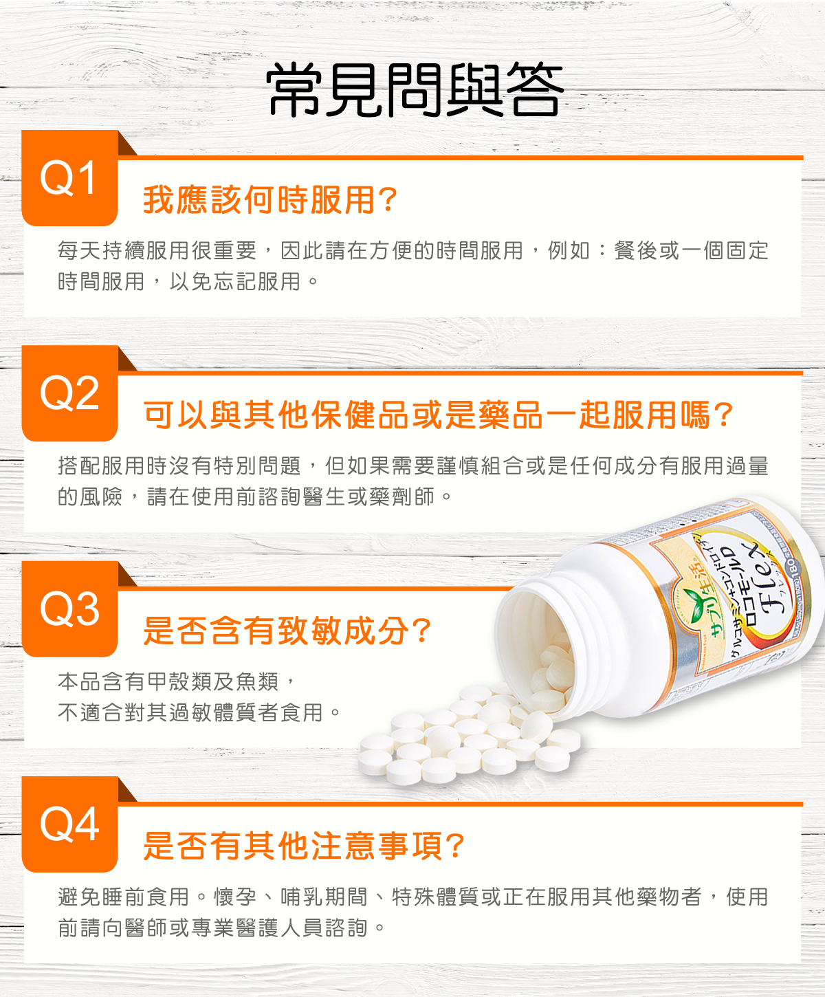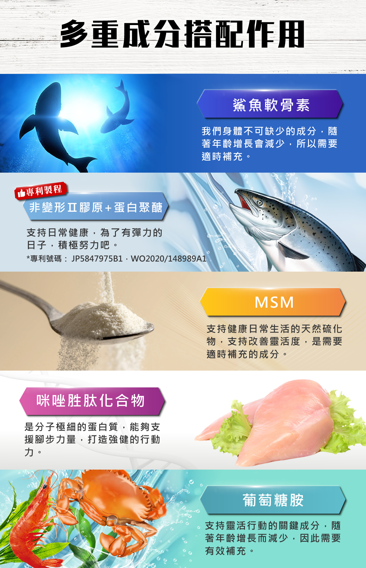 搭配 非變性二型膠原蛋白 (UC-2)、蛋白聚醣、葡萄糖胺、軟骨素、MSM、咪唑胜肽化合物