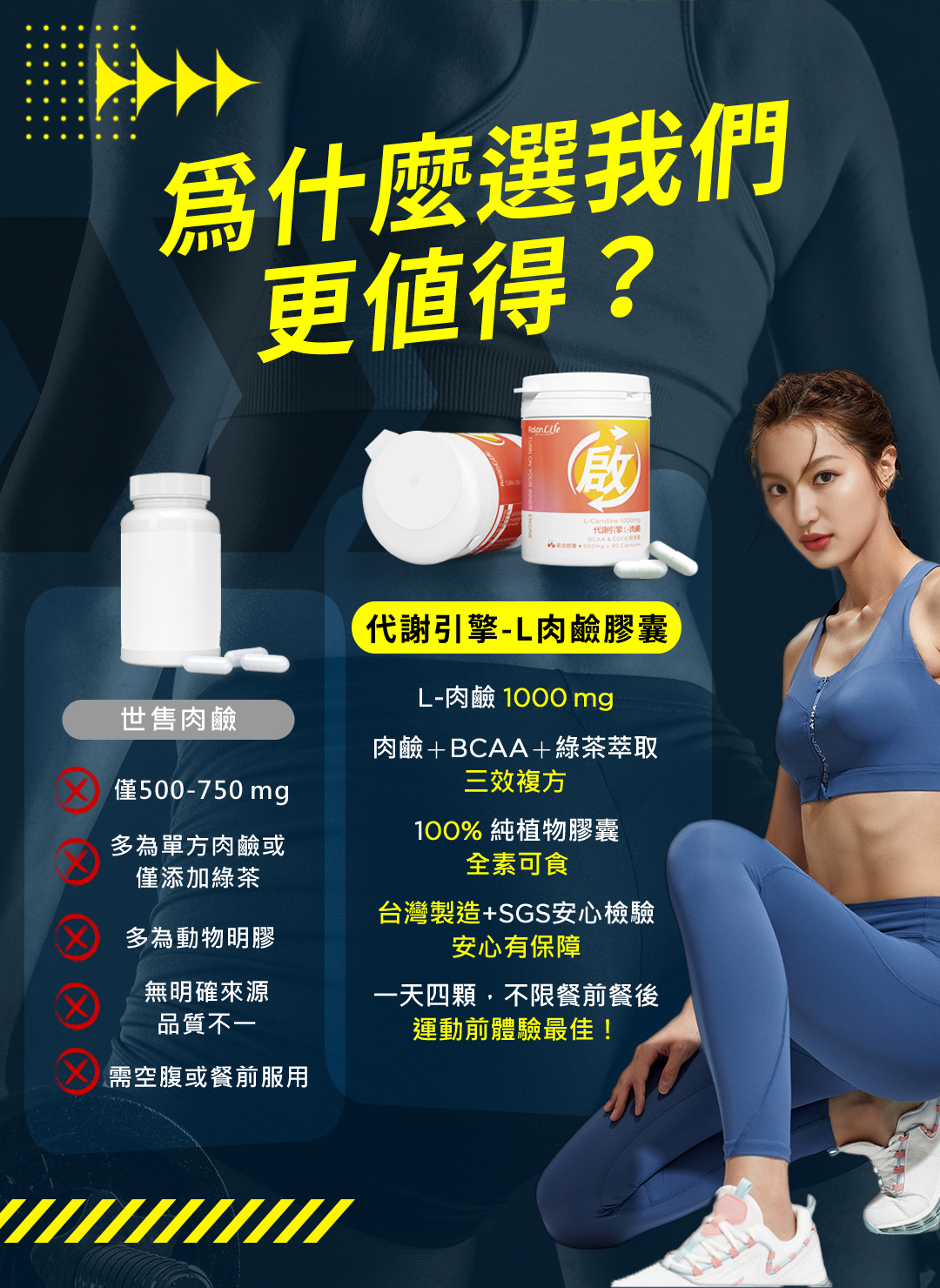 每日建議:1日3顆,提供1000mg L-肉鹼