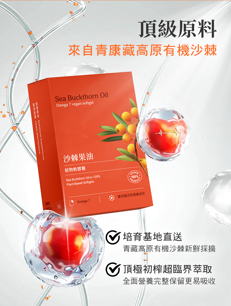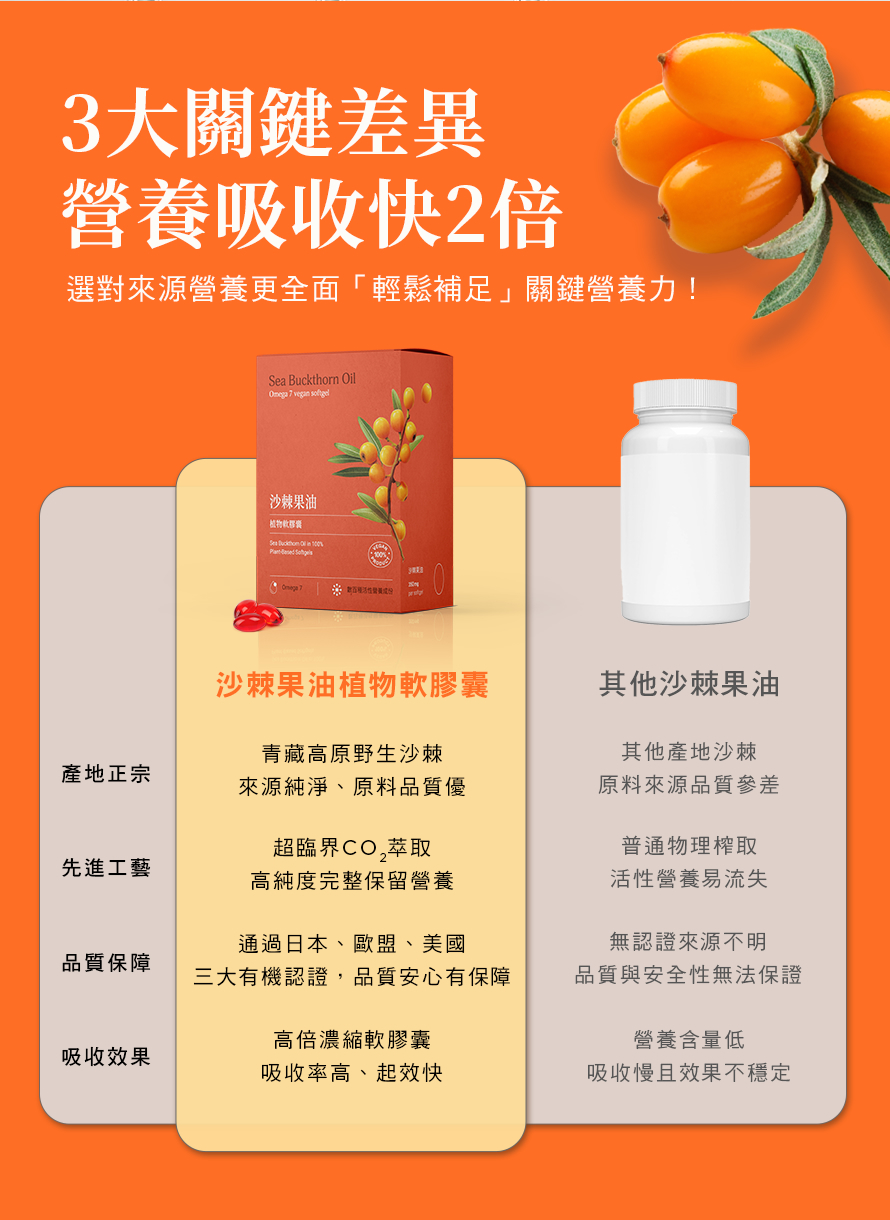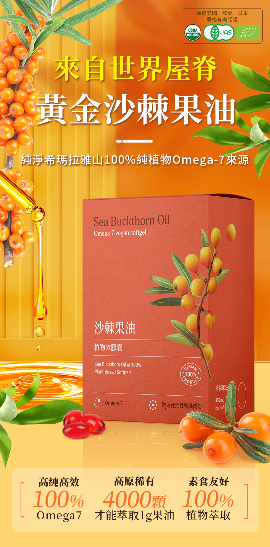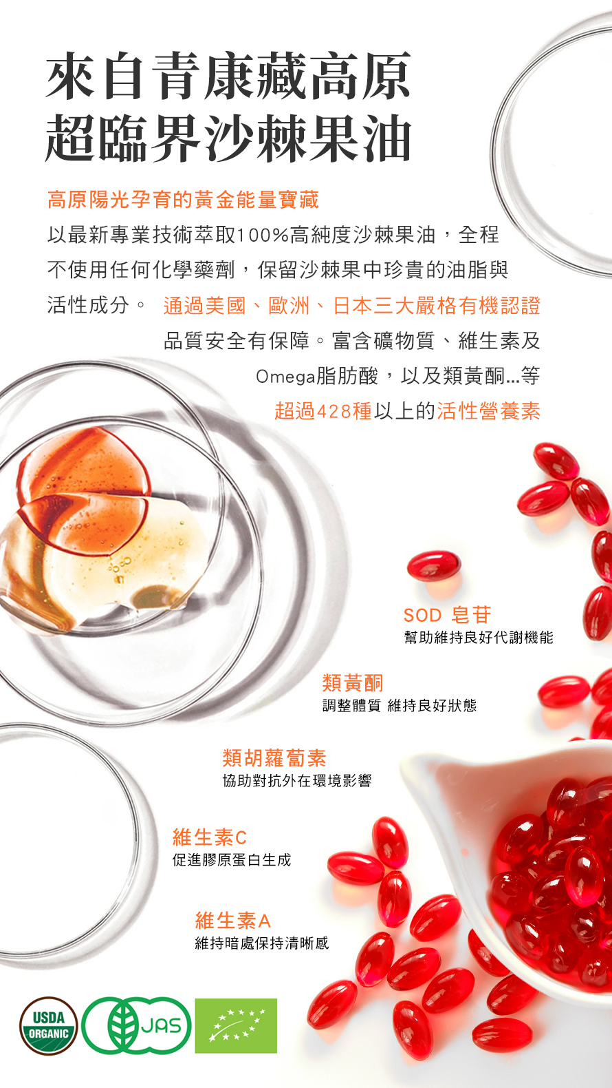 √ 高純度沙棘果油——4000顆沙棘果才能萃取1g精華