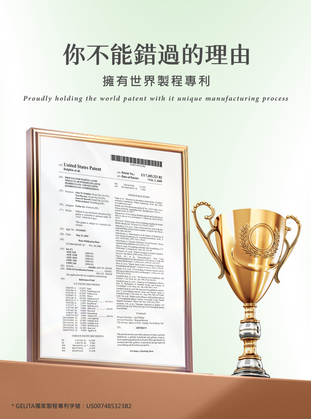 *獨家製程專利:US007485323B2